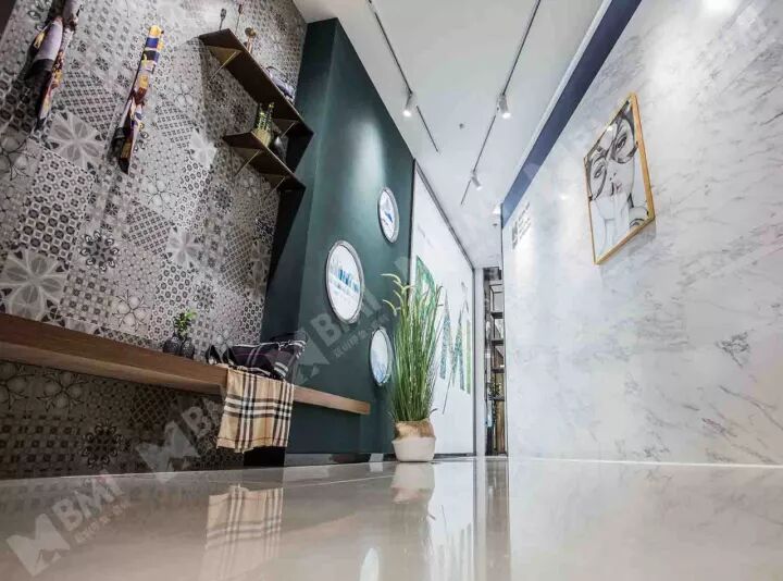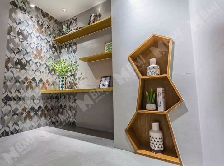 花砖,不仅花在图案,还花在形状。图案可以不一,形状也可以不一。调皮的BMI六角砖,看似无意却有意的铺贴,给空间带来活泼而时尚的现代感。