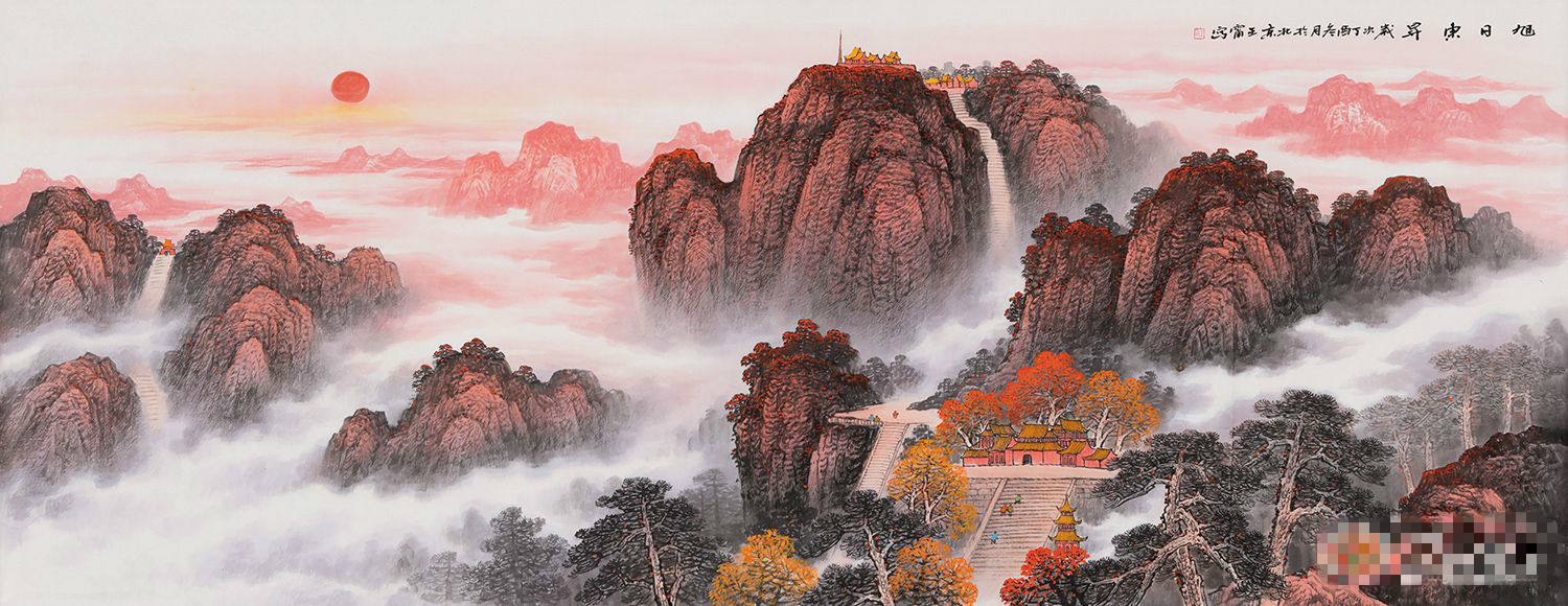 五岳靠山图 王宁精心之作国画作品《旭日东升》