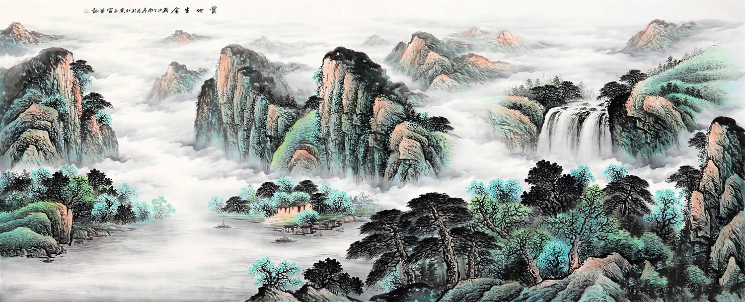 王宁新品力作八尺横幅青绿国画《宝地生金》