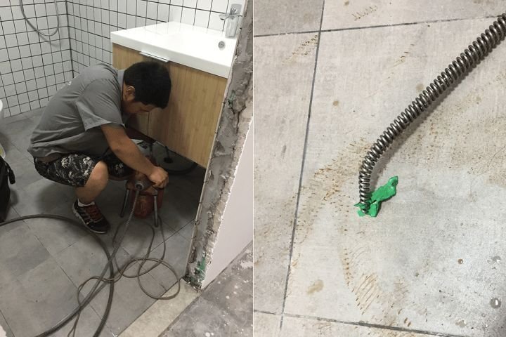 比如,装完浴室柜,原本通畅的下水道突然堵了。疏通完才发现,是做防水时不仔细,涂料滴到下水道里给堵了。