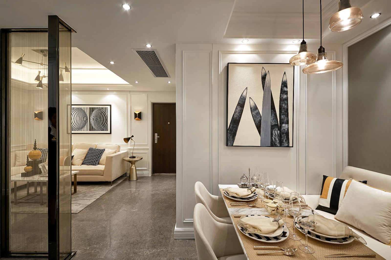 空间设计流畅、简洁。这类样式的装扮更加倾向于室内面积宽敞、内外通畅,并且最大程度的引入自然光,在居室平面设计中追求流畅感,墙面、地面、顶棚以及家具陈设乃至灯具器皿等,均以简洁的造型、纯洁的质地、精细的工艺为其特征。